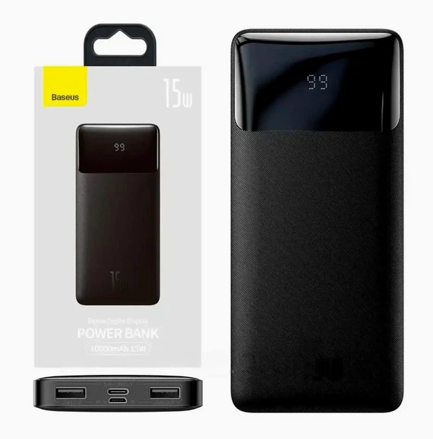 Портативний акумулятор Baseus 10000 мАг 15W із швидкою зарядкою для смартфонів та планшетів чорний