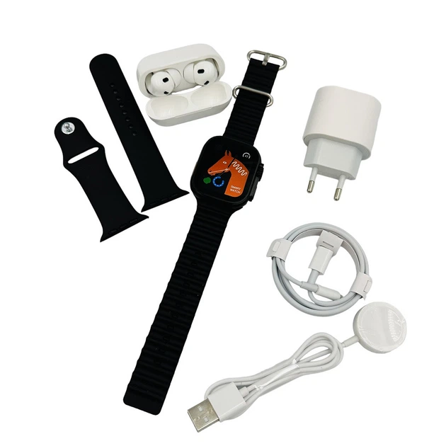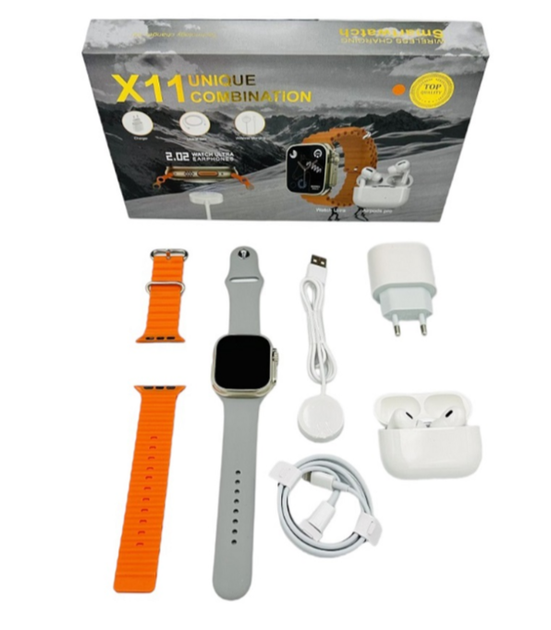 Набір аксесуарів X11 смарт-годинник S8Ultra навушники Airpods Pro 2 ремінець оранжевий сірий, зарядні пристрої