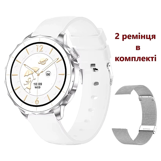 Смарт годинник Smart Hope Divine Mini Жіночі Прийом дзвінка 2 ремінці Здоров'я Спорт Silver+White
