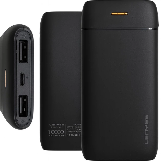 Зовнішній акумулятор Power Bank Lenyes PX167 Чорний 10000 mAh LED індикатор 2 USB порти компактний формат