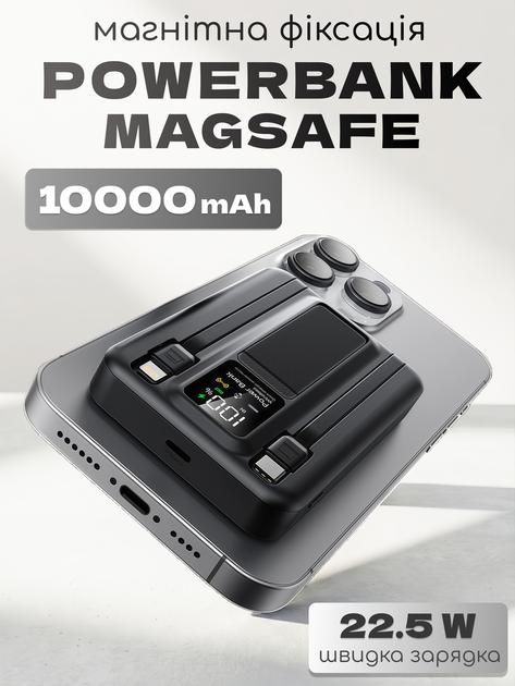 Powerbank Magsafe 10000mAh - 22.5W - магнітний повербанк з підставкою для смартфона iPhone (айфона) та Android - портативний