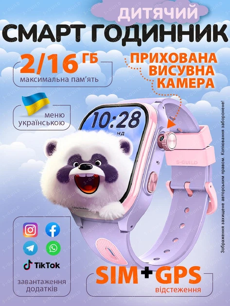 Дитячий смарт годинник AS06 із GPS, сім картою, AI-помічником, висувною камерою та прослушкою Purple
