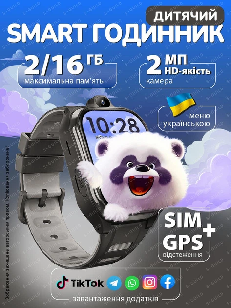 Дитячий смарт годинник AS10 із GPS, SIM-карткою, AI-помічником і 2Мп камерою, відеодзвінком та прослушкою Black