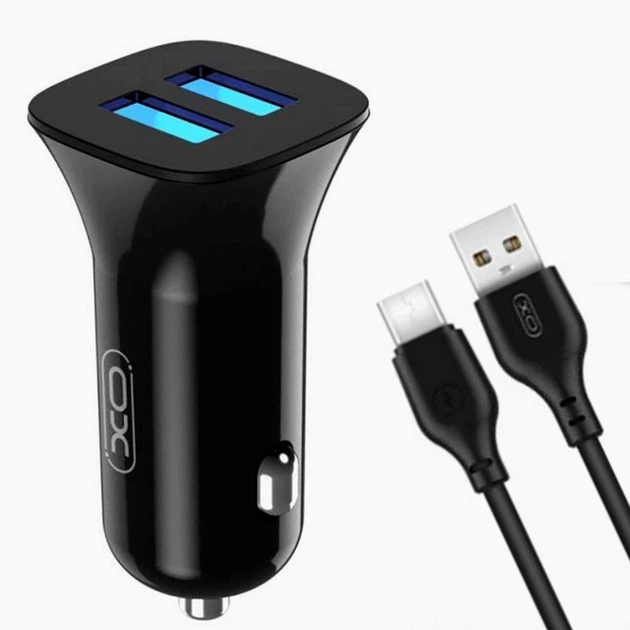 Автомобільний зарядний пристрій 12W 2,4A 2 USB Type-C чорний XO TZ10 для прикурювача