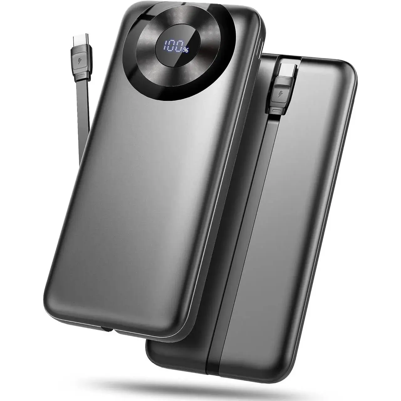 Повербанк 10000 мАг, USB-C Вхід та вихід з кабелем, функція швидкого заряджання