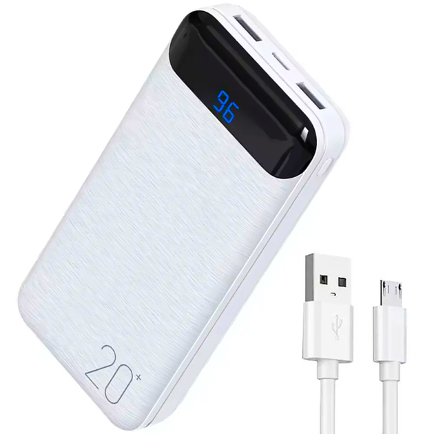 Повербанк з дисплеєм 20000мАч, Білий / Power bank / Зовнішній аккумулятор KR-89 (L)