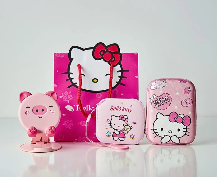 УМБ Powerbank Hello Kitty 10000 mAh Подарунковий Набір: Повербанк + Чохол + Тримач + Подарункова Коробка Рожевий