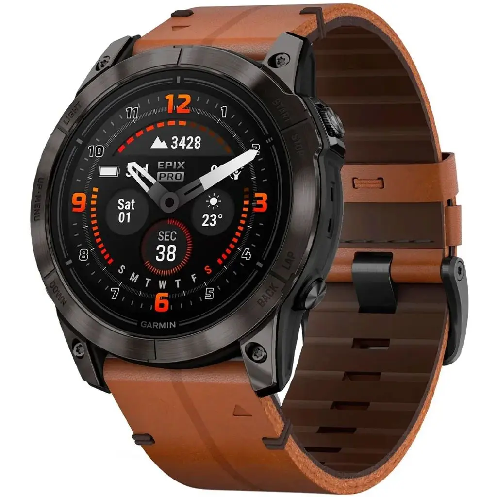 Смарт-годинник Garmin Epix Pro Gen 2 Sapphire Carbon G DLC Tit with Chestnut L Band 51 мм (010-02804-30)