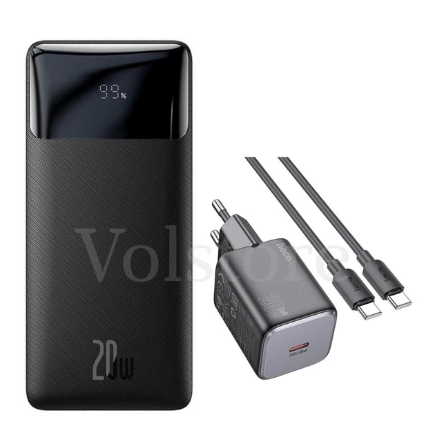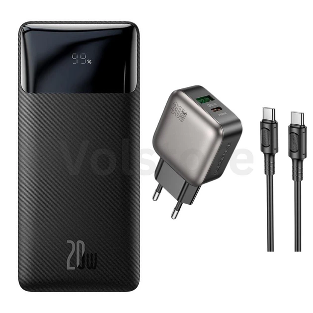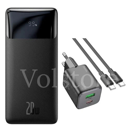 Комплект Павербанк Baseus 30000 mAh 20W 3A та Мережевий Адаптер Hoco Almighty N41 20W Type-C to Type-C Павербанк із швидкою