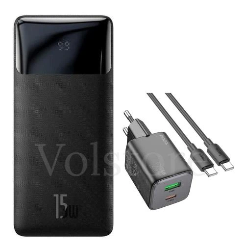 Комплект Павербанк Baseus 30000 mAh 15W 3A та Мережевий Адаптер Hoco Almighty N41 20W Type-C to Type-C Павербанк зі швидкою