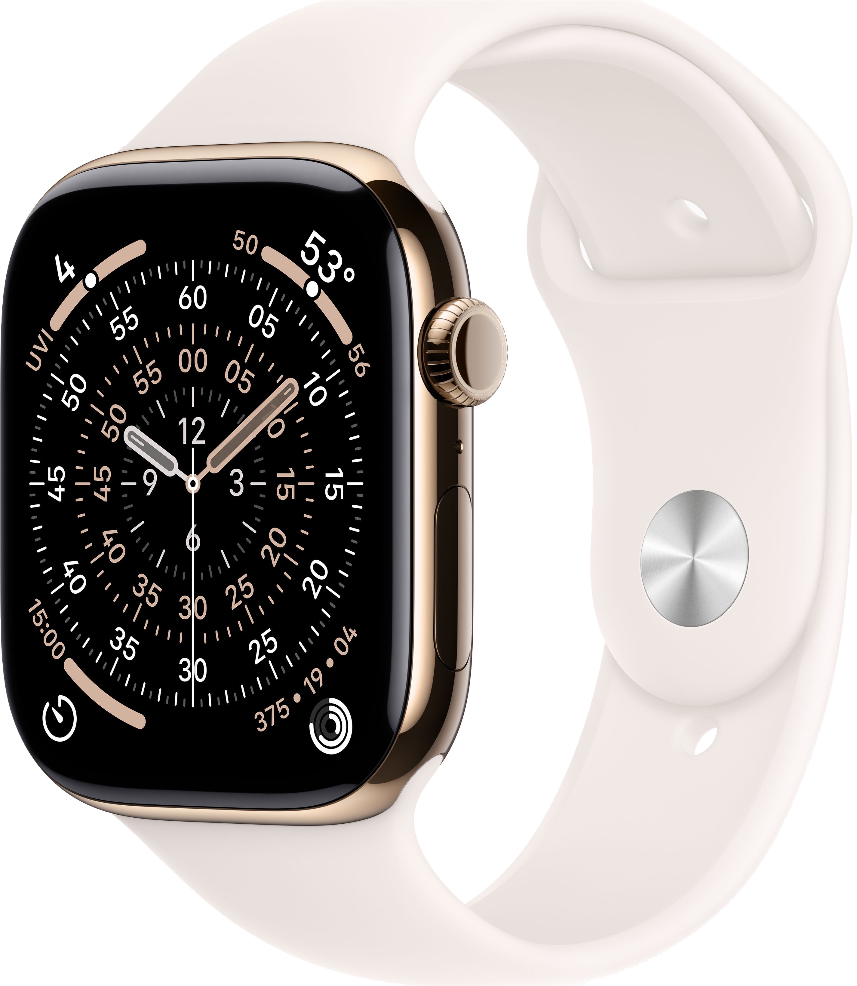 Apple Watch Series 11 GPS + Cellular 46mm Gold Titanium Case w. Light Blush Sport Band - S/M (MFD54RK/A)