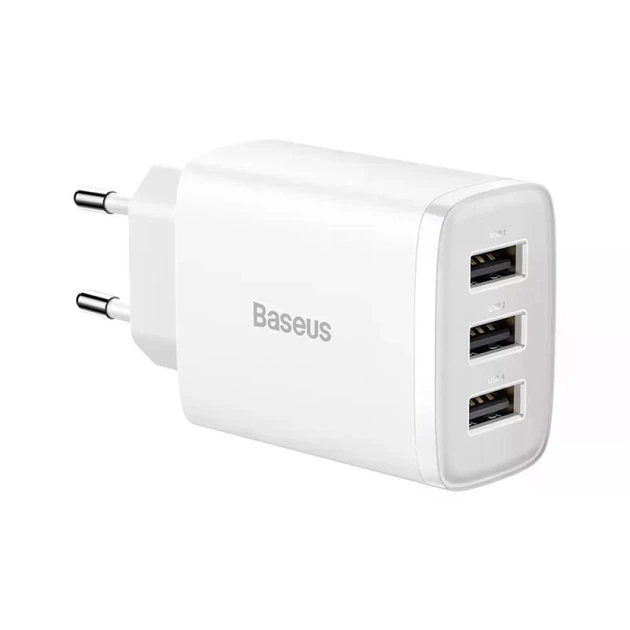 Мережевий зарядний пристрій Baseus Compact Charger 3-USB 17W White