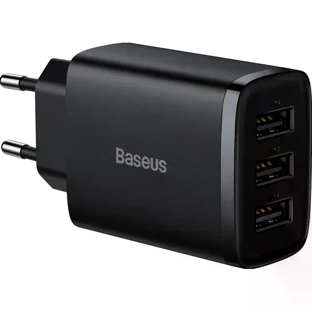 Мережевий зарядний пристрій Baseus Compact Charger 3-USB 17W Black