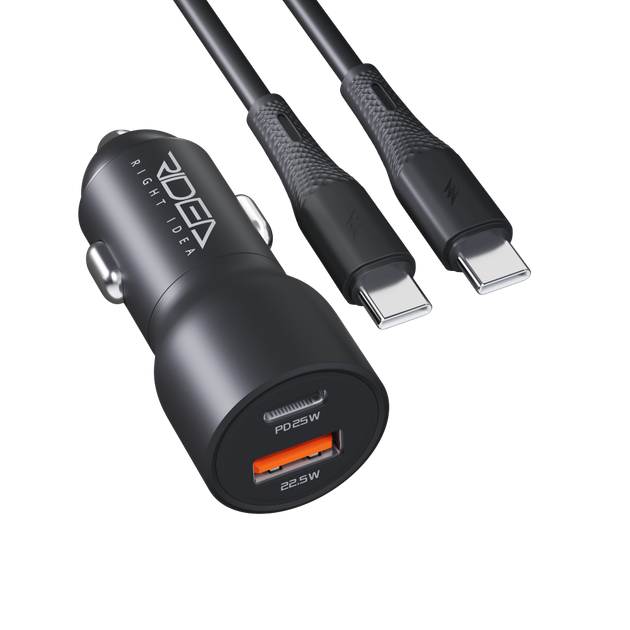 Автомобільний Зарядний Пристрій Ridea RCC-47114 QPow Pro 1USB/1USB-C PD/QC 47.5W+Type-C to Type-C Колір Чорний