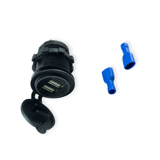 Гніздо врізне 2 USB 2,1A, 2,1A, 12-24В, кришка, з підсвічуванням синім