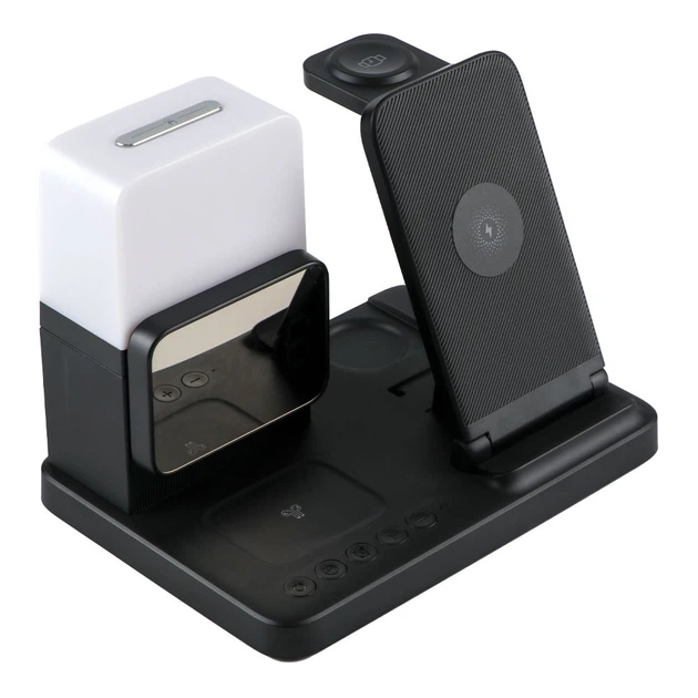 Бездротовий Зарядний Пристрій Z15 6in1 Clock+Lamp15W IP version Колір Чорний