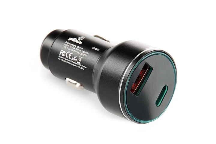 Автомобільний зарядний пристрій USB/Tipe-C (12/24V - 5V 3A) чорний "12 Atelie" від прикурки