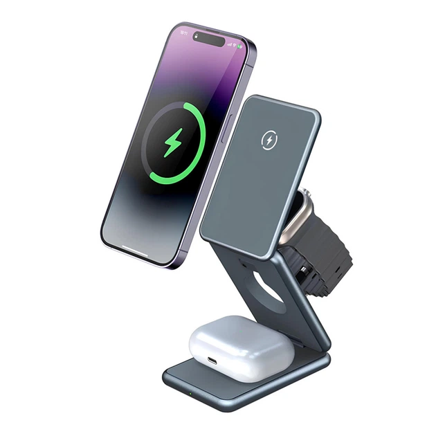 Бездротовий зарядний пристрій 3 в 1 потужністю 15 Вт док-станція для декількох пристроїв