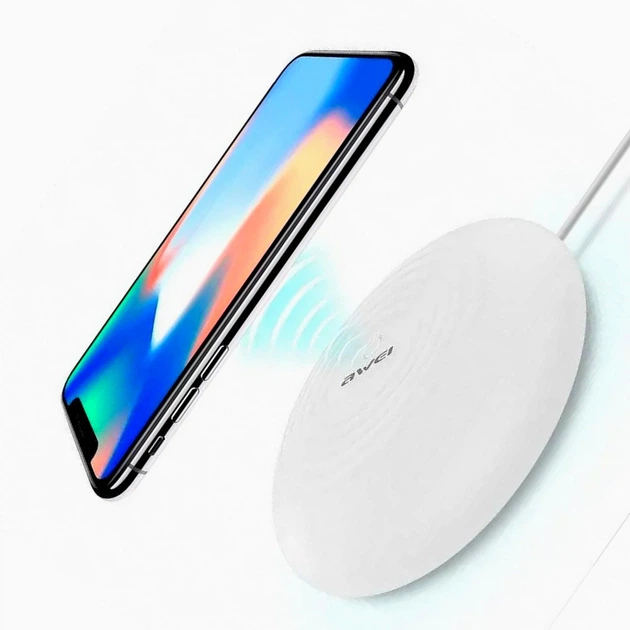Бездротовий зарядний пристрій 10W з підсвічуванням 7 кольорів для телефону AWEI W7 білий новий