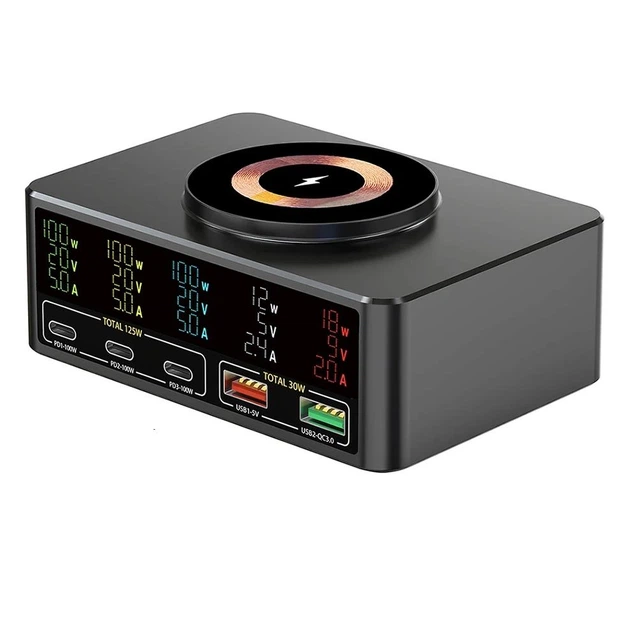Мережева зарядна станція WLX-X9C 110W LCD екран з бездротовою зарядкою (2Type-C+2USB) Чорний