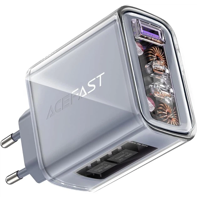 Зарядний пристрій 65W GaN з підтримкою швидкої зарядки, 2xUSB Type-C та 1xUSB, прозорий корпус, Cherry Blossom