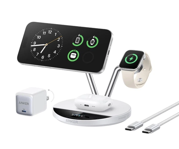 Бездротовий зарядний пристрій Anker Prime MagSafe 3-in-1 Qi2 25W Smart Display with TEC Active Cooling для iPhone 17-12 Seri
