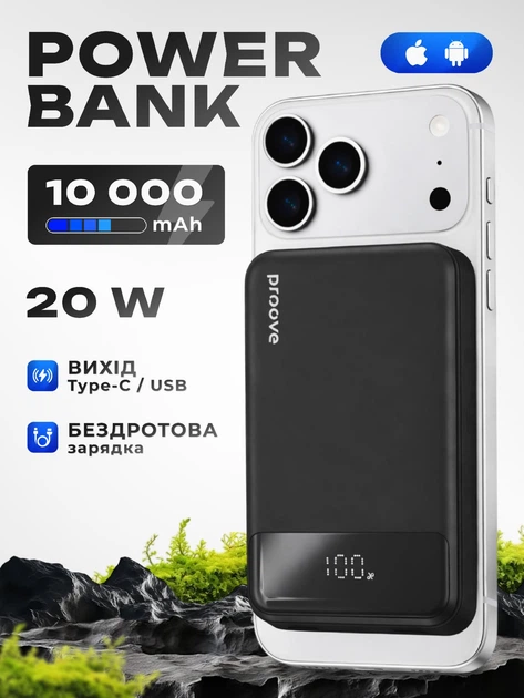 Магнітний павербанк MagSafe powerbank Proove УМБ магсейф бездротовий павер банк 20W 10000mAh для apple iphone