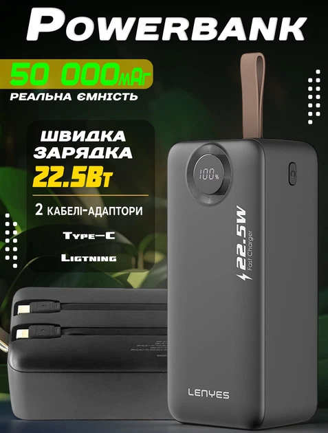Повербанк із цифровим індикатором заряду Powerbank Lenyes 50000 mAh 22.5Вт (реальна ємність) Чорний