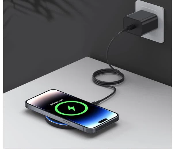 Бездротовий індукційний зарядний пристрій KOANNI 20 Вт LED QI + USB-C кабель 1 м (Al3)