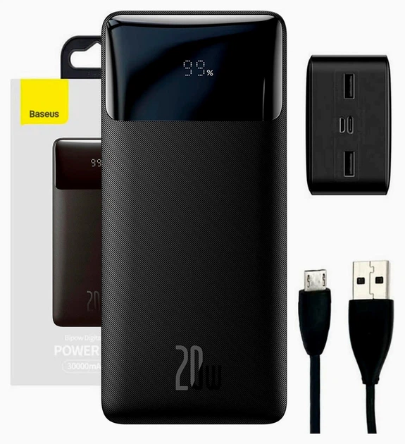Повербанк Baseus Bipow 30000mAh 20W із швидкою зарядкою для смартфонів та планшетів із цифровим дисплеєм