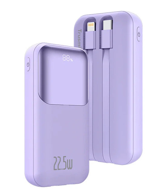 Зовнішній акумулятор Trusmi Ultra Mini PowerBank Digital Display 10000mAh 22.5W Cable TypeC Lightning Purple