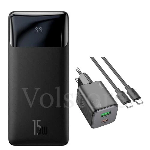 Комплект Павербанк Baseus 20000 mAh 15W 3A та Мережевий Адаптер Hoco Almighty N41 20W Type-C to Type-C Павербанк зі швидкою