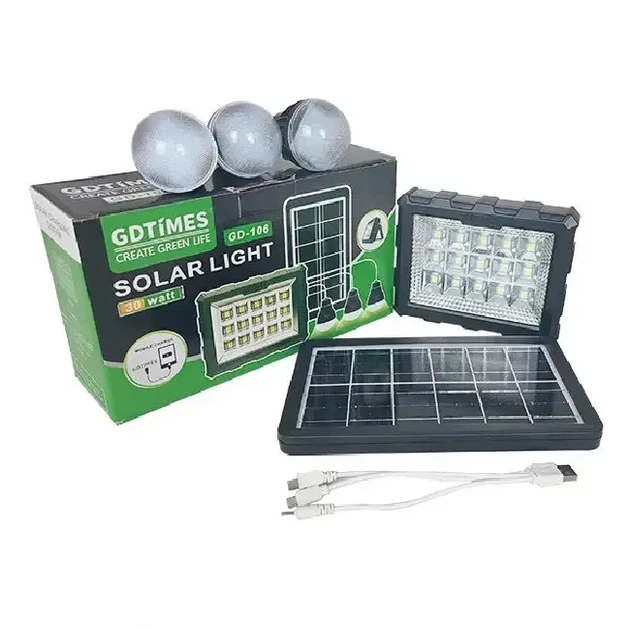Портативна станція для заряджання з потужним ліхтарем прожектором GDTimes GD 106, 3 лампами та сонячною панеллю
