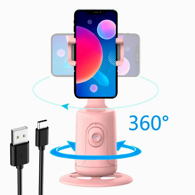 Розумний штатив 360 ° з датчиком руху акумулятор 1200 мАч USB для телефону рожевий модель P01