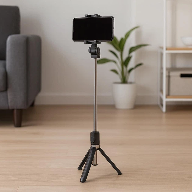 Штатив для телефону алюмінієвий з телескопічною висотою 80-210 см чорний