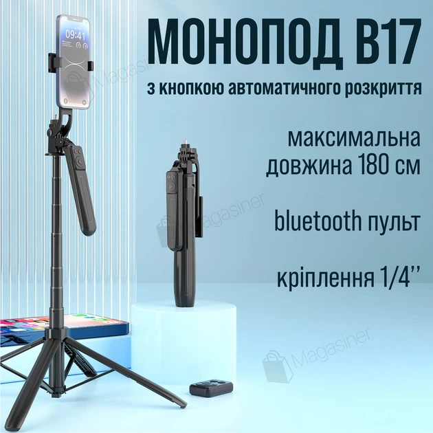 Штатив для телефону B17 180 см з блютуз пультом і кнопкою розкриття ніжок (3476)