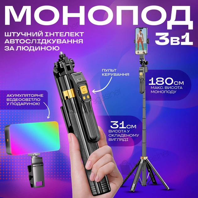 Набір блогера з розумним штативом для телефону AI 180 см та відеосвітлом RGB (3436-1)