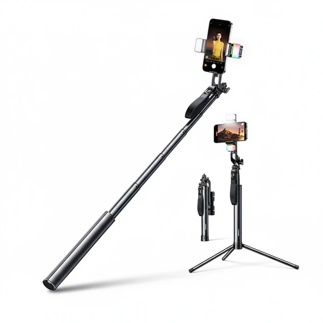 Селфі-штатив Ugreen LP861 170 см алюмінієвий, подвійна LED RGB підсвітка, Bluetooth 5.0 Чорний (45681)