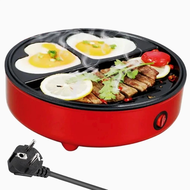 Електрична сковорода 20 см 600 Вт антипригарна міні HG-501 червона нержавіюча сталь