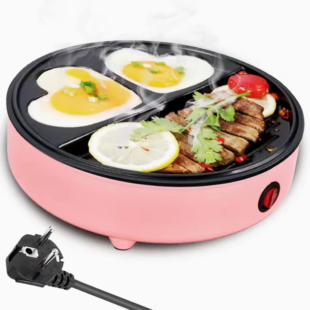 Електрична сковорода 20 см 600Вт антипригарна рожева HG-501