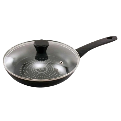 Сковорідка d26см скляна кришка а/п Non Stick чорна PN-26B Interos