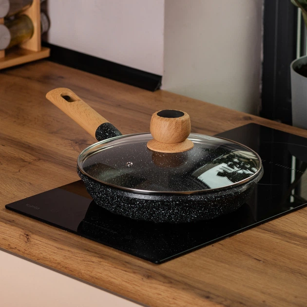 Сковорода алюмінієва 28 см WELL DONE WD-1018B індукція, сковорода з товстим дном, зручна на кухню