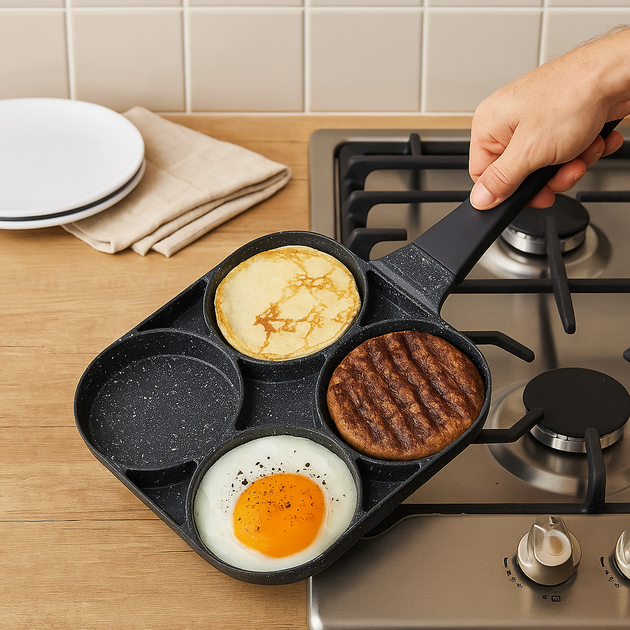 Сковорода антипригарна 4-х секційна LY-894 порційна для приготування страв на всіх типах плит