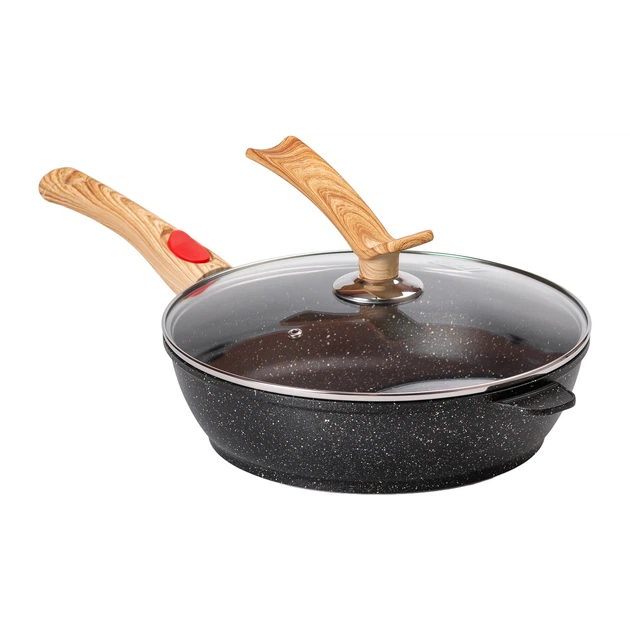 Сковорода глибока MGC 28 см алюмінієва 3.5 літра зі скляною кришкою і знімною ручкою Коричневий