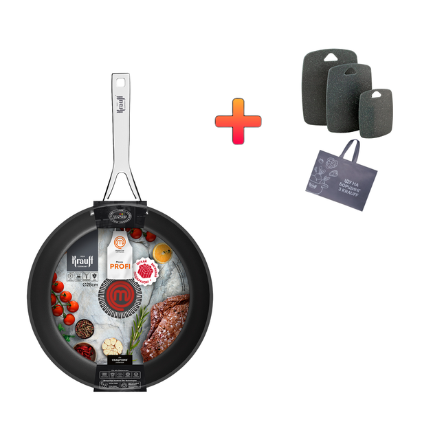 Сковорода Master Chef Krauff 28см + ПОДАРУНКИ: Набір кухонних дошок 3шт та сумка-шопер з ручками