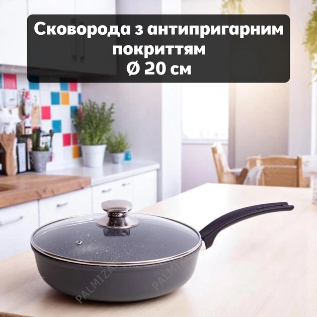Сковорода з природного каменю з кришкою, з антипригарним покриттям, діаметром 20 см, об'ємом 1 л