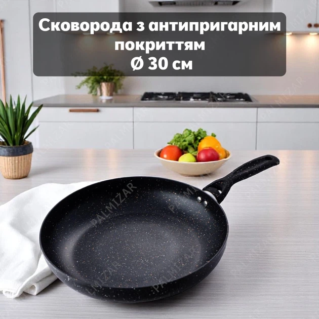 Сковорода з природного каменю, з антипригарним покриттям, діаметром 30 см, об'ємом 3 л