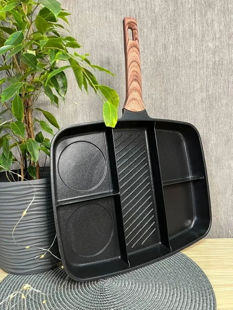 Універсальна сковорода з п'ятьма розділеними секціями та антипригарним покриттям