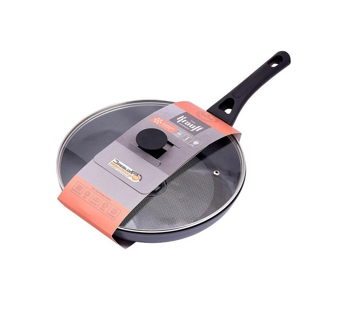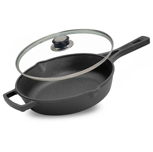 Сковорода чавунна Brizoll 26 см литою ручкою та скляною кришкою