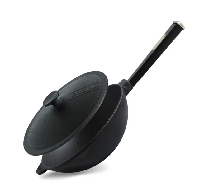 Сковорода чавунна WOK Brizoll 26см з чавунною кришкою та дерев'яною ручкою 2,8 л